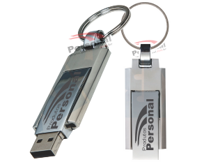 Pen drive grande de metal com chaveiro. Suporte fosco e compartimento do pen drive brilhante, basta puxá-lo e girá-lo para utilização.