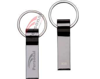 Pen drive metálico de 8GB com pintura grafite espelhado e chaveiro.