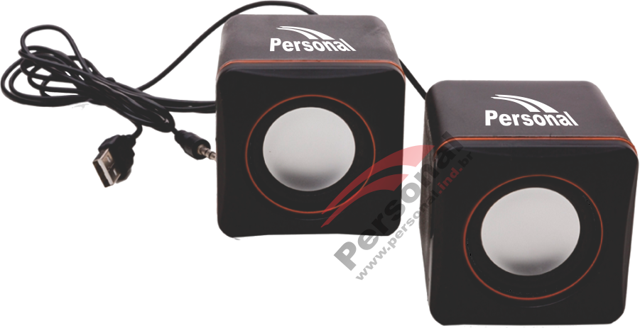 Caixa de som plástica resistente preto com detalhes laranja. Canais auto-falantes multimidia 2.0, saída RMS 2.5W + 2.5W, S/N de 65dB isolado, rate 45dB, resposta de freqüência 90Hz-20KHz, sensibilidade 80dB + – 2db e SNR:> 0,3%. Controle de volume na própria caixa.